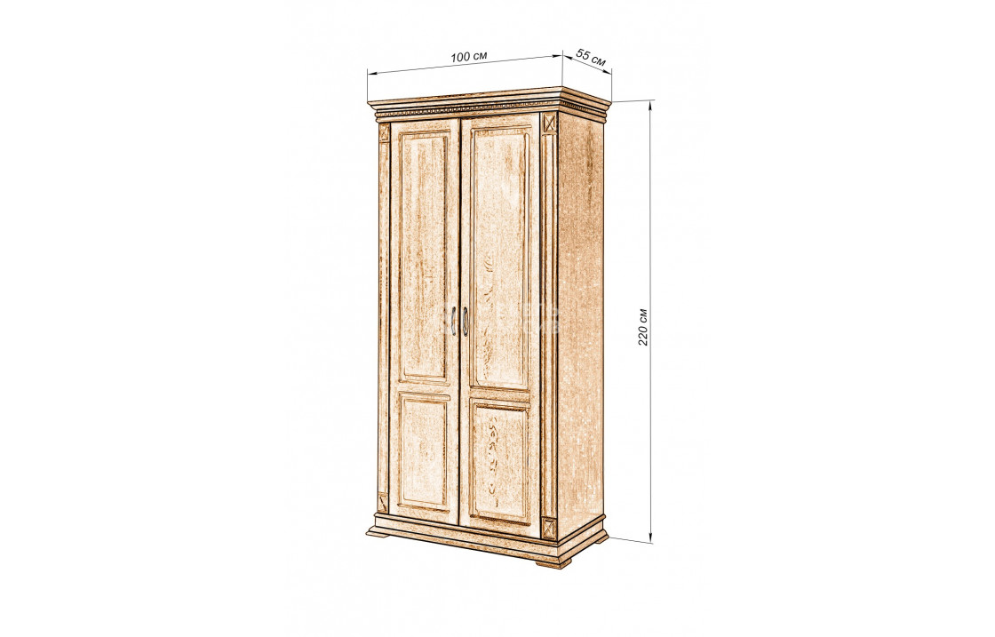 Шкаф 2-х створчатый Флоренция-1 (полка, штанга) изготовлен из экологически чистого древесного массива и покрыт специальным лаком. Модель, которую можно купить по лучшей цене в нашем интернет-магазине, оснащена плоскими ножками для защиты напольного покрытия и украшена геометрическими узорами.